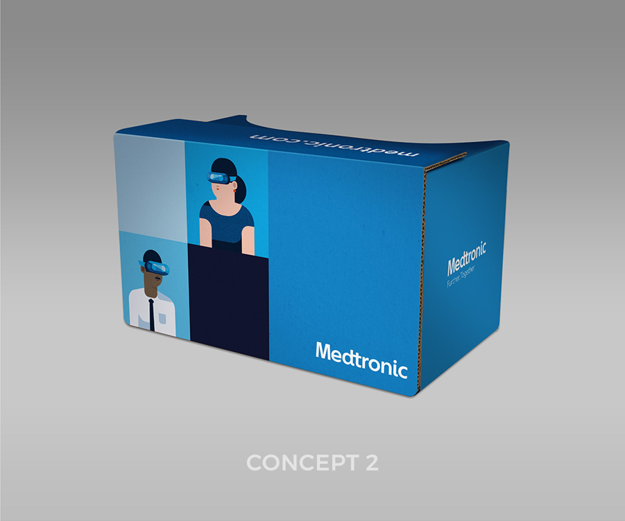 Medtronic is always advancing and integrating technology whenever possible. They wanted to use Virtual Reality videos to enhance their presentations events, therefore a a skin design for the Google Cardboard was needed.