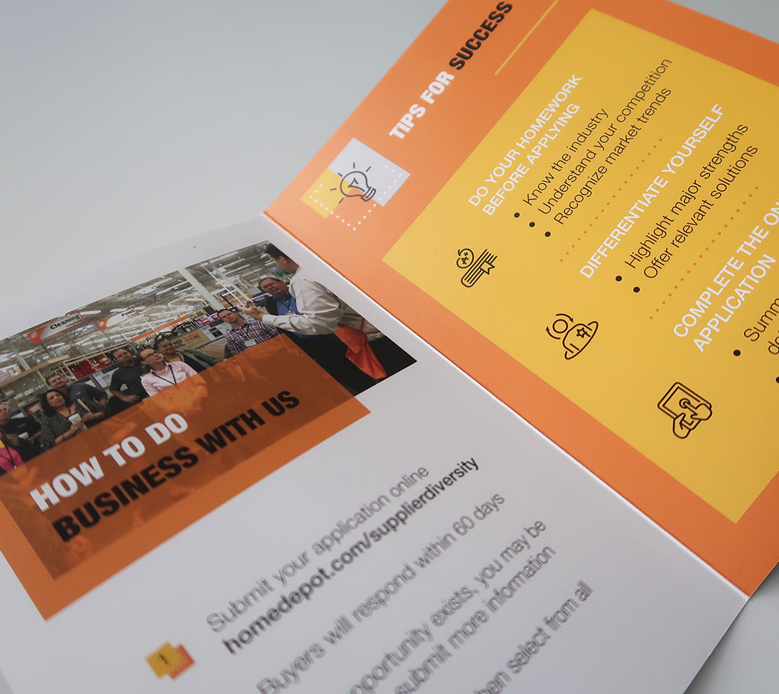The division was in need to update their brand, keeping in mind that it should within The Home Depot’s already existing brand parameters. This project included updating their division’s logo, brochure and booth for their participation at the Small Business Expo.