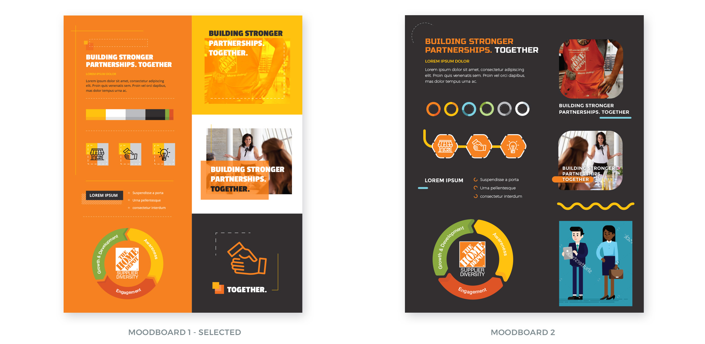 The marketing materials to be used at the Small Business Expo and other events were created based on a theme developed by Creative Juice, entitled “Building Stronger Partnerships. Together.” Moodboards created not only to visually guide our client but also the internal creative execution of the brochure and booth.